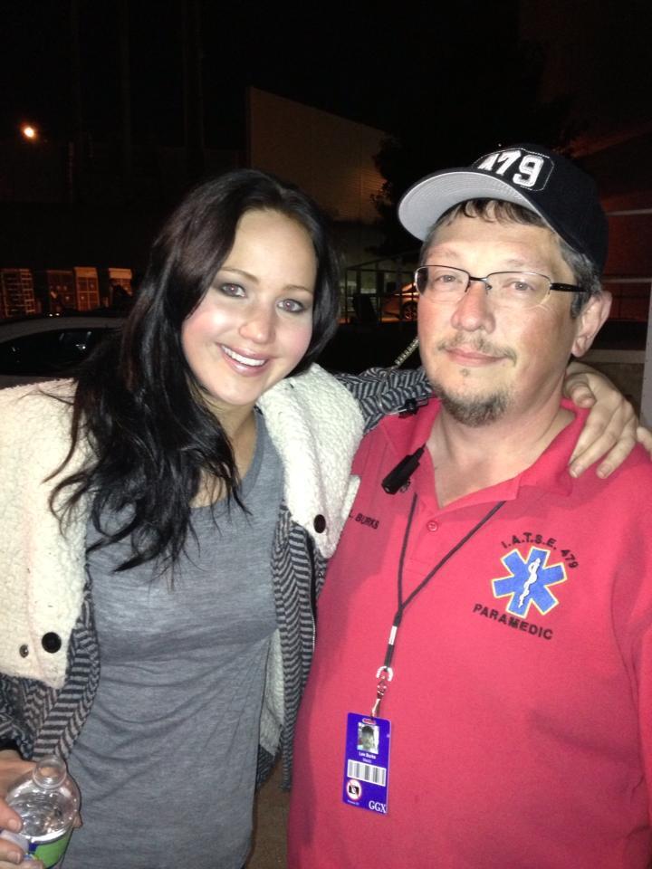 con una médico que ayudaba en el set de Atlanta y otra más donde la estás maquillando en plena filmación de